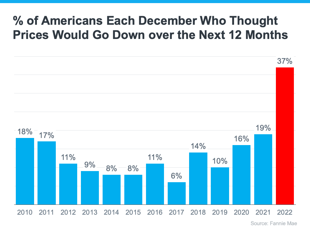 These forecasts put doubt in the minds of many consumers about the strength of the residential real estate market. Evidence of this can be seen in the December Consumer Confidence Survey from Fannie Mae. It showed a larger percentage of Americans believed home prices would fall over the next 12 months than in any other December in the history of the survey (see graph below). That caused people to hesitate about their homebuying or selling plans as we entered the new year.